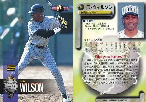 Nombre comercial en japonés: BBM/レギュラーカード/阪神タイガース/BBM’98 ベースボールカード 366 [レギュラーカード] : ウィルソン