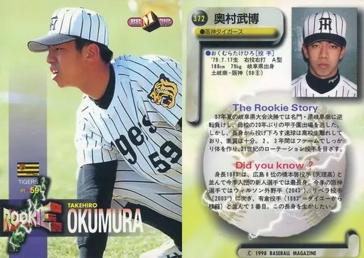 Nombre comercial en japonés: BBM/レギュラーカード/阪神タイガース/BBM’98 ベースボールカード 372 [レギュラーカード] : 奥村武博