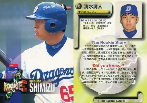 Nombre comercial en japonés: BBM/レギュラーカード/中日ドラゴンズ/BBM’98 ベースボールカード 392 [レギュラーカード] : 清水清人