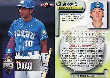 Nombre comercial en japonés: BBM/レギュラーカード/西武ライオンズ/BBM’98 ベースボールカード 398 [レギュラーカード] : 髙木大成