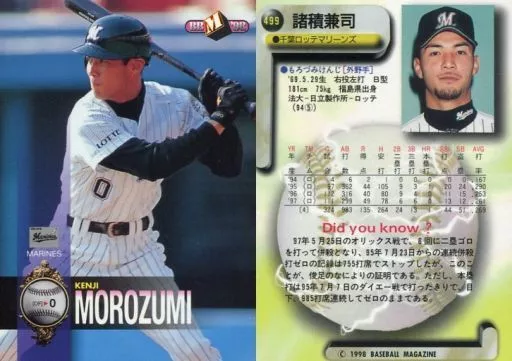 Nombre comercial en japonés: BBM/レギュラーカード/千葉ロッテマリーンズ/BBM’98 ベースボールカード 499 [レギュラーカード] : 諸積兼司