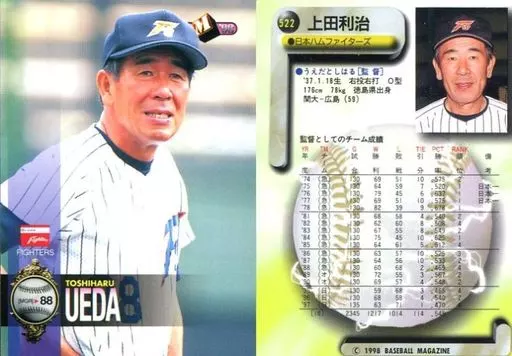 Nombre comercial en japonés: BBM/レギュラーカード/北海道日本ハムファイター/BBM’98 ベースボールカード 522 [レギュラーカード] : 上田利治