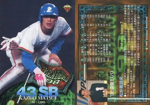 Nombre comercial en japonés: BBM/レギュラーカード/BBM99ベースボールカード 14[レギュラーカード]:松井稼頭央