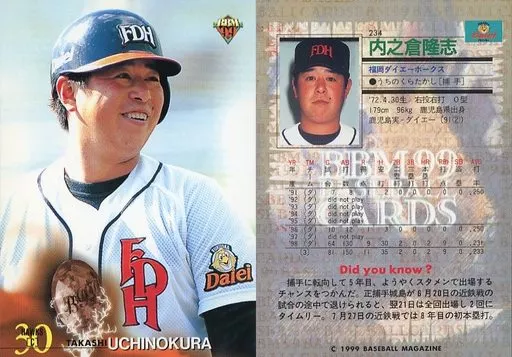 Nombre comercial en japonés: BBM/レギュラーカード/BBM99ベースボールカード 234[レギュラーカード]:内之倉隆志