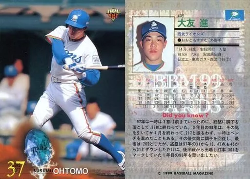 Nombre comercial en japonés: BBM/レギュラーカード/BBM99ベースボールカード 409[レギュラーカード]:大友進