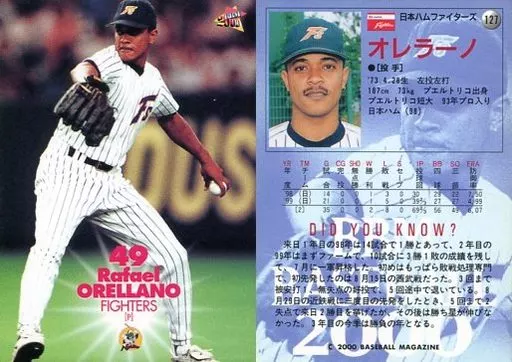 Nombre comercial en japonés: BBM/レギュラーカード/BBM2000ベースボールカード 127:オレラーノ「北海道日本ハムファイターズ」