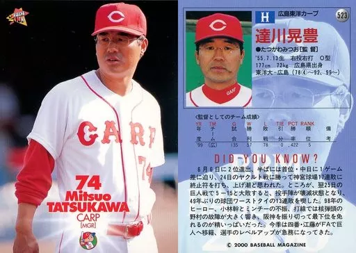 Nombre comercial en japonés: BBM/レギュラーカード/BBM2000ベースボールカード 523:達川晃豊「広島東洋カープ」