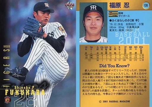 BBM / tarjeta regular / tarjeta de béisbol BBM2001 136 : Shinobu Fukuhara "Hanshin Tigers"