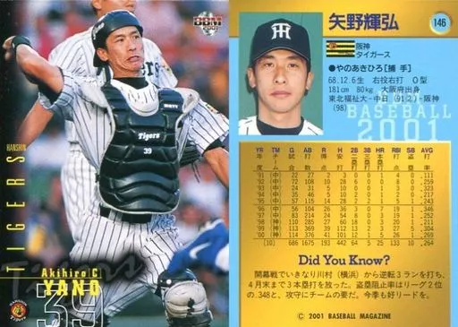 Nombre comercial en japonés: BBM/レギュラーカード/BBM2001ベースボールカード 146:矢野輝弘「阪神タイガース」