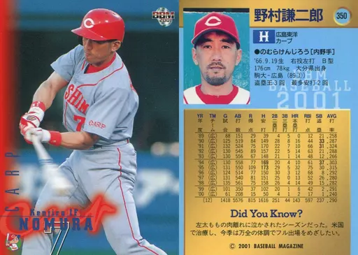 Nombre comercial en japonés: BBM/レギュラーカード/BBM2001ベースボールカード 350:野村謙二郎(黒サインパラレル版)