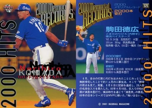 Nombre comercial en japonés: BBM/レギュラーカード/BBM2001ベースボールカード 525:駒田(前期版)「横浜ベイスターズ」