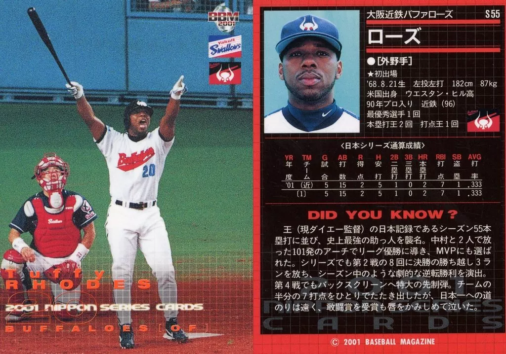 Nombre comercial en japonés: BBM/日本シリーズカード/BBM2001ベースボールカード S55:ローズ「大阪近鉄バファローズ」