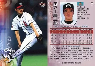Nombre comercial en japonés: BBM/レギュラーカード/BBM2002ベースボールカード1st 221:田之上慶三郎「福岡ダイエーホークス」