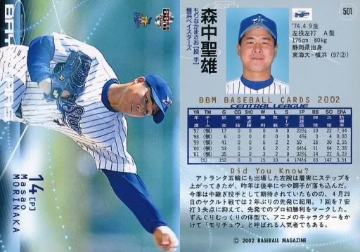 Nombre comercial en japonés: BBM/レギュラーカード/BBM2002ベースボールカード2nd 501:森中聖雄「横浜ベイスターズ」
