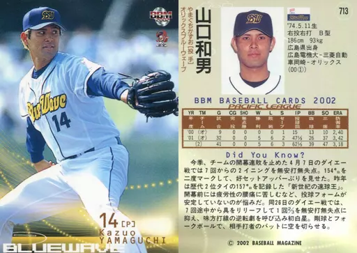 Nombre comercial en japonés: BBM/レギュラーカード/BBM2002ベースボールカード2nd 713:山口和男「オリックスバファローズ」