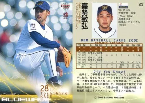 Nombre comercial en japonés: BBM/レギュラーカード/BBM2002ベースボールカード2nd 722:嘉勢敏弘「オリックスバファローズ」