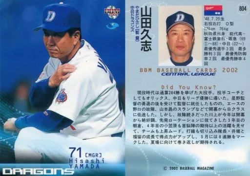 Nombre comercial en japonés: BBM/レギュラーカード/BBM2002ベースボールカード2nd 804:山田久志「中日ドラゴンズ」
