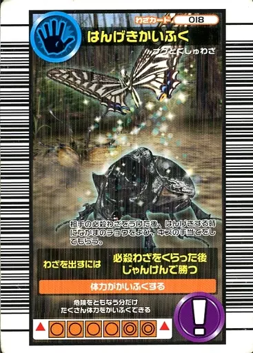 Nombre comercial en japonés: ムシキング/わざカード/2006 セカンド ~パーフェクトキング~ 018:はんげきかいふく
