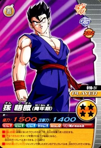 Nombre comercial en japonés: DBZデータカードダス/ノーマル/プレイヤーカード/データカードダス ドラゴンボールZ W爆烈IMPACT 第1弾 010-IV[ノーマル]:孫悟飯(青年期)