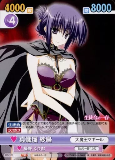 Nombre comercial en japonés: ヴィクトリースパーク/トライアルデッキ/生徒会の一存 /トライアルデッキ「ドラゴンマガジン&ドラゴンエイジ」 DD/102[TD]:真儀瑠 紗鳥