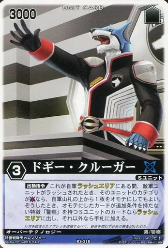 Nombre comercial en japonés: レンジャーズストライク/ノーマルレア/青/第5弾 五龍の激鱗 RS-318[NR]:ドギー・クルーガー