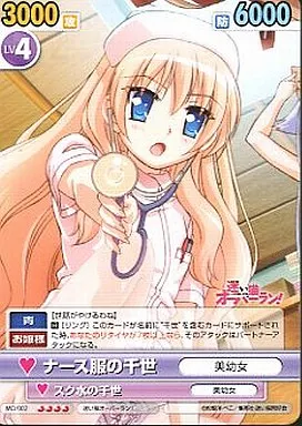Nombre comercial en japonés: ヴィクトリースパーク/RR/迷い猫オーバーラン!/ブースターパック「迷い猫オーバーラン!」 MO/002[RR]:ナース服の千世