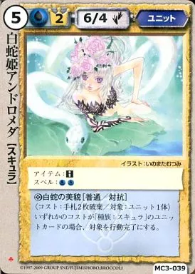 Nombre comercial en japonés: モンスターコレクション/極稀/ユニット/英雄王の星誕 MC3-039[極稀]:白蛇姫アンドロメダ