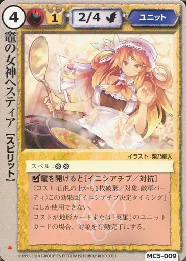 Nombre comercial en japonés: モンスターコレクション/極稀/ユニット/星剣姫の烙印 MC5-009[極稀]:竈の女神ヘスティア