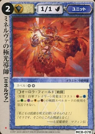 Nombre comercial en japonés: モンスターコレクション/稀/ユニット/伏龍殿の覇者 MC8-078[稀]:ミネルヴァの極光導師