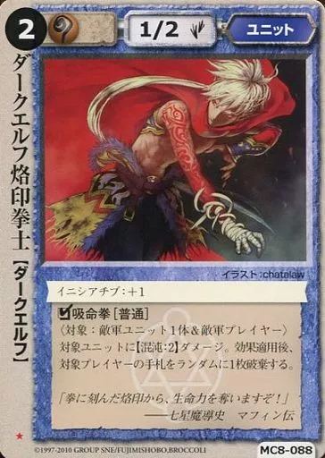 Nombre comercial en japonés: モンスターコレクション/稀/ユニット/伏龍殿の覇者 MC8-088[稀]:ダークエルフ烙印拳士
