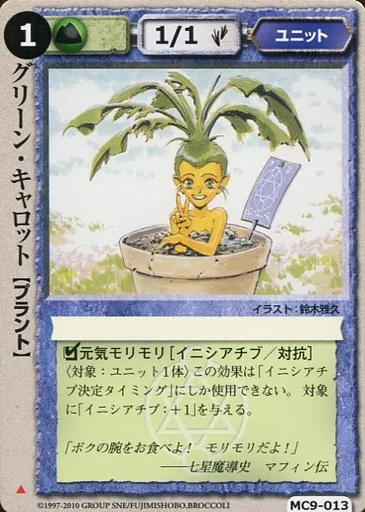 Nombre comercial en japonés: モンスターコレクション/頻繁/ユニット/紅河宮の精霊 MC9-013[頻繁]:グリーン・キャロット
