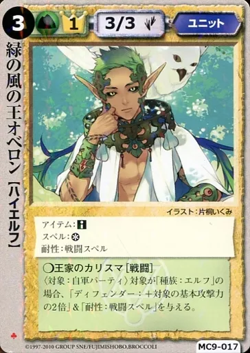 Nombre comercial en japonés: モンスターコレクション/極稀/ユニット/紅河宮の精霊 MC9-017[極稀]:緑の風の王オベロン