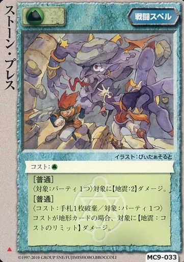 Nombre comercial en japonés: モンスターコレクション/頻繁/戦闘スペル/紅河宮の精霊 MC9-033[頻繁]:ストーン・プレス