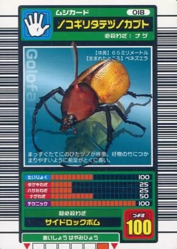 Nombre comercial en japonés: ムシキング/ムシカード/2003 春 018:ノコギリタテヅノカブト