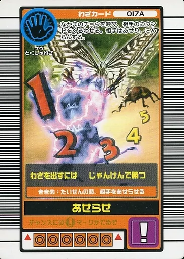Nombre comercial en japonés: ムシキング/わざカード/2003 AUTUMN 秋2 017A:あせらせ