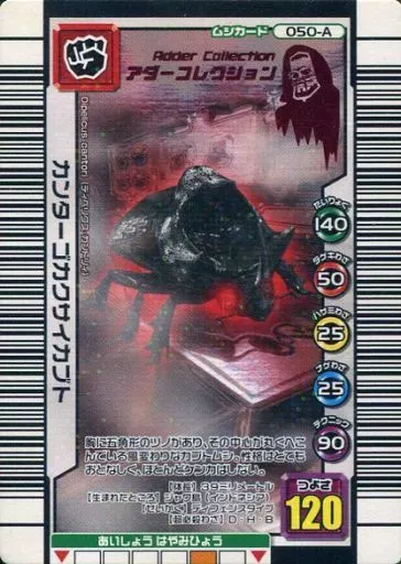 Nombre comercial en japonés: ムシキング/キラ赤/アダーコレクション/3億枚突破記念限定デザイン 050-A[キラ赤]:カンターゴカクサイカブト