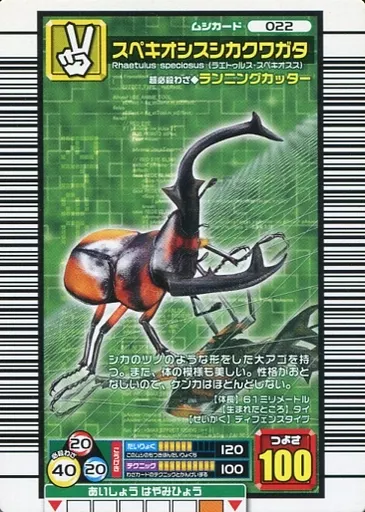Nombre comercial en japonés: ムシキング/ムシカード/2006 ファースト 022:スペキオシスシカクワガタ
