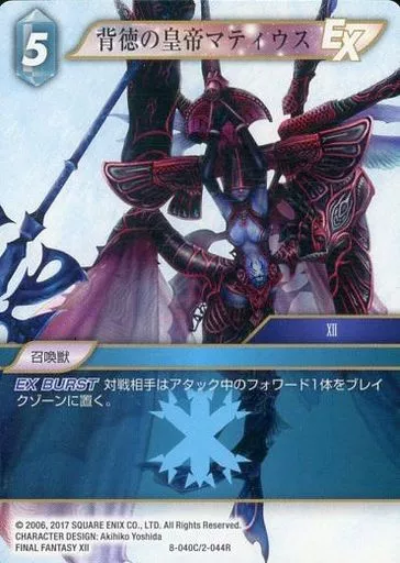 Nombre comercial en japonés: ファイナルファンタジーTCG/C/氷/OpusVIII 8-040C/2-044R[C]:背徳の皇帝マティウス