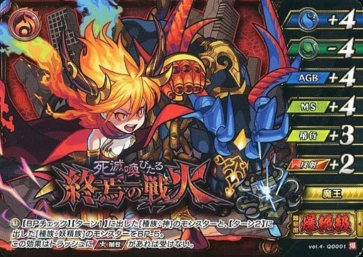 Nombre comercial en japonés: モンスターストライクカードゲーム/火/クエストカード/祝福されし世界 ツインデッキ vol.4-Q0001[-]:死滅喚びたる終焉の戦火