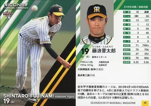 Nombre comercial en japonés: BBM/レギュラーカード/阪神タイガース/BBM2019 ICONS -TEENAGE MEMORIES- 35 [レギュラーカード] : 藤浪晋太郎