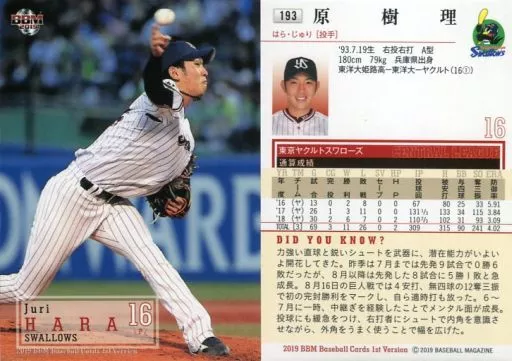 Nombre comercial en japonés: BBM/レギュラーカード/東京ヤクルトスワローズ/BBM2019 ベースボールカード 1stバージョン 193 [レギュラーカード] : 原樹理