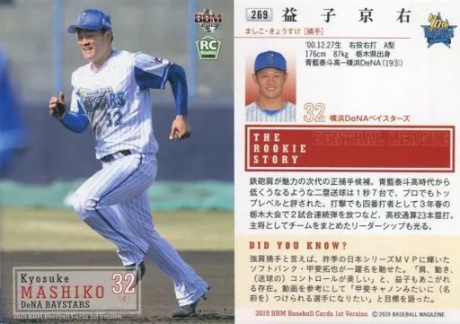 Nombre comercial en japonés: BBM/レギュラーカード/横浜DeNAベイスターズ/BBM2019 ベースボールカード 1stバージョン 269 [レギュラーカード] : 益子京右