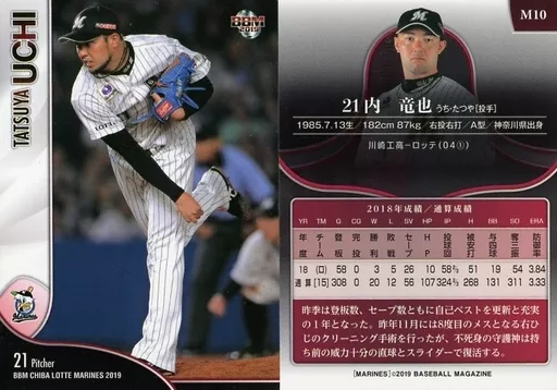 Nombre comercial en japonés: BBM/レギュラーカード/千葉ロッテマリーンズ/BBM2019 千葉ロッテマリーンズ M10 [レギュラーカード] : 内竜也