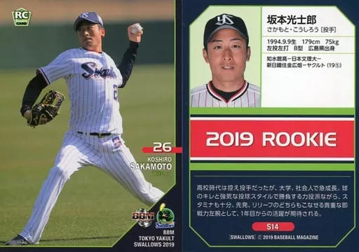 Nombre comercial en japonés: BBM/レギュラーカード/東京ヤクルトスワローズ/BBM2019 東京ヤクルトスワローズ S14 [レギュラーカード] : 坂本光士郎