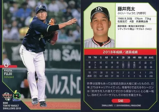 Nombre comercial en japonés: BBM/レギュラーカード/東京ヤクルトスワローズ/BBM2019 東京ヤクルトスワローズ S46 [レギュラーカード] : 藤井亮太