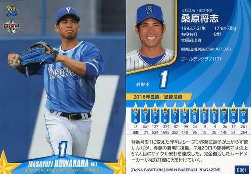 Nombre comercial en japonés: BBM/レギュラーカード/横浜DeNAベイスターズ/BBM2019 横浜DeNAベイスターズ DB61 [レギュラーカード] : 桑原将志