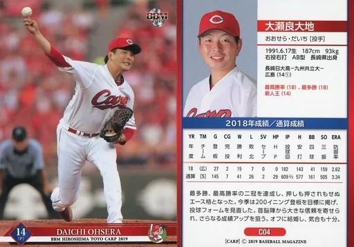 Nombre comercial en japonés: BBM/レギュラーカード/BBM2019 広島東洋カープ C04 [レギュラーカード] : 大瀬良大地