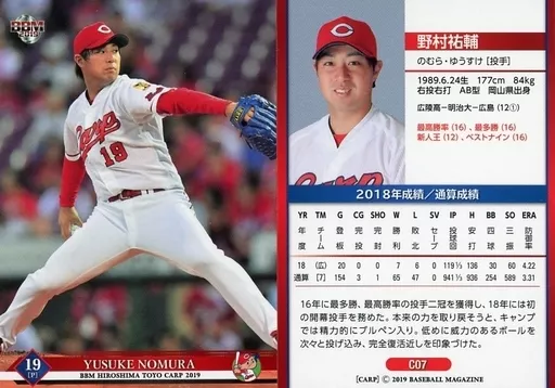 Nombre comercial en japonés: BBM/レギュラーカード/BBM2019 広島東洋カープ C07 [レギュラーカード] : 野村祐輔
