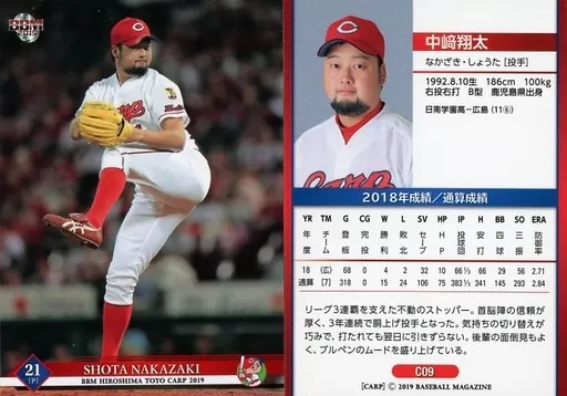 Nombre comercial en japonés: BBM/レギュラーカード/BBM2019 広島東洋カープ C09 [レギュラーカード] : 中﨑翔太
