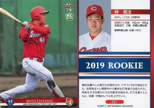 Nombre comercial en japonés: BBM/レギュラーカード/BBM2019 広島東洋カープ C51 [レギュラーカード] : 林晃汰